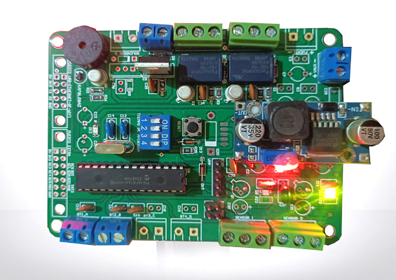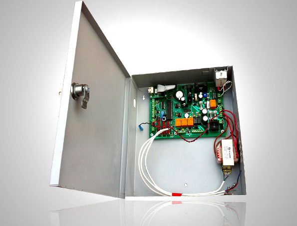 Tarjeta electrónica de sistema esclusa para dos puertas abatibles, cuenta con bateria de respaldo y estación manual de emergencia.
