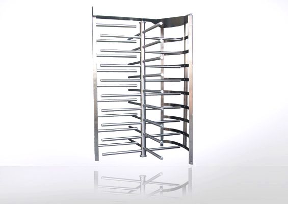 Puerta giratoria de 4 brazos a 90° de separación entre sí, fabricada de acero inoxidable, diseñada para aplicaciones de control de acceso.