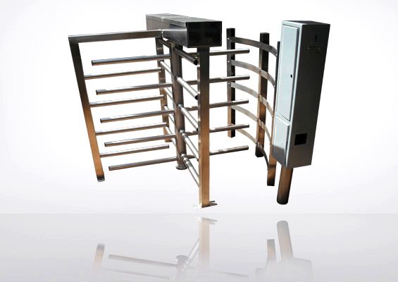Puerta giratoria de media altura de 4 brazos a 90° de separación entre sí, fabricada de acero inoxidable, diseñada para cobro de entrada ya que cuenta con un monedero electrónico que da cambio y un gabinete para resguardo de dinero con chapa de alta seguridad.