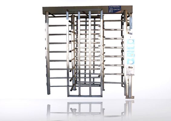 Puerta giratoria de 4 brazos a 90° de separación entre sí, fabricada de acero inoxidable, diseñada para cobro de entrada ya que cuenta con un monedero electrónico que da cambio y un gabinete para resguardo de dinero con chapa de alta seguridad.